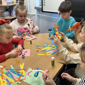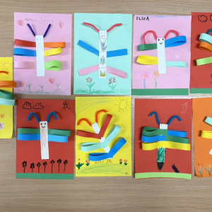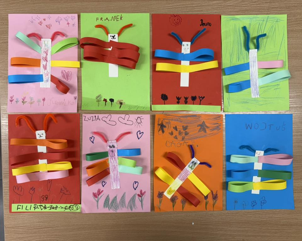 Na podstawie wysłuchanych opowieści nasi goście stworzyli prace plastyczne i powstały piękne, kolorowe motyle.